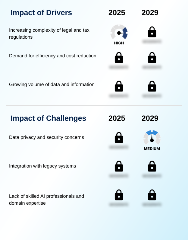 Data privacy and security concerns represent a significant challenge for the global AI in tax and legal advisory market. The legal and tax sectors handle highly sensitive and confidential information, and the use of AI systems, which require access to large datasets, raises questions about data protection. Compliance with stringent regulations adds layers of complexity, requiring organizations to implement robust security measures like encryption and access controls. The ethical implications of AI processing confidential data, particularly regarding algorithmic bias mitigation and the risk of re-identification from anonymized datasets, are under intense scrutiny. The risk-averse nature of legal and tax professionals means that any perceived security vulnerability can significantly deter the adoption of AI-driven due diligence and other AI-powered tools.Integration with legacy systems presents another formidable challenge. Many law firms and tax advisory practices operate on established IT infrastructures that were not designed for seamless integration with modern, cloud-native AI solutions. A survey of legal tech professionals indicated that over 60% of firms identified integrating new AI tools with existing legacy case management systems as their primary technical hurdle. This integration can be complex, costly, and time-consuming, often requiring significant customization and data migration efforts. The specialized nature of legal and tax data, stored in unique formats, adds to the complexity. Resistance to overhauling these embedded legacy systems creates a substantial barrier to the widespread adoption of technologies like legal workflow optimization and tax data reconciliation.