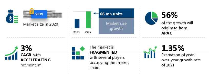 The automotive engine valves market share is expected to increase by 66 million units from 2020 to 2025, and the market’s growth momentum will accelerate at a CAGR of 3%.