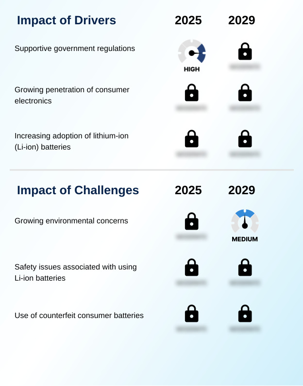 The consumer battery industry research report provides comprehensive data (region-wise segment analysis), with forecasts and estimates in "USD million" for the period 2025-2029, as well as historical data from 2019 - 2023 for the following segments.