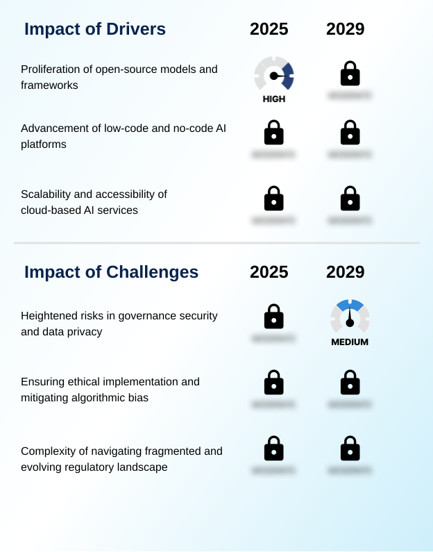 The global market is witnessing a profound shift centered on democratizing access to AI technology, driven by the proliferation of open-source models and frameworks and significant advancements in low-code no-code AI platforms. This trend is further accelerated by the scalability of cloud-based AI services, which facilitates AI model development and deployment simplification. The rise of small language models and edge AI is making artificial intelligence more accessible, meaning AI for non-technical business users is becoming a reality. The market also sees the emergence of multimodal AI as a standard feature and a push for the deep integration of generative AI into enterprise data, alongside the growing popularity of open-source alternatives to proprietary AI models, fostering innovation.This democratization is fueling the adoption of AI-powered robotic process automation tools and automating workflows with conversational AI. Organizations are increasingly implementing secure and compliant AI solutions across sectors, from AI in BFSI for fraud detection and enhancing AI in healthcare for diagnostic accuracy, to improving AI in manufacturing for quality control. In the consumer space, AI-driven hyper-personalization in retail is transforming customer experiences. However, this rapid expansion brings heightened risks in governance security and data privacy. Businesses face the critical challenge of ensuring ethical implementation and mitigating algorithmic bias, and the complexity of navigating evolving AI regulatory landscape requires strategic foresight to harness AI's full potential responsibly.
