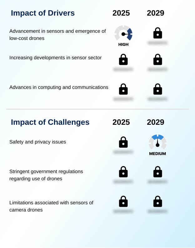 The drone sensor industry research report provides comprehensive data (region-wise segment analysis), with forecasts and estimates in "USD million" for the period 2025-2029, as well as historical data from 2019 - 2023 for the following segments.