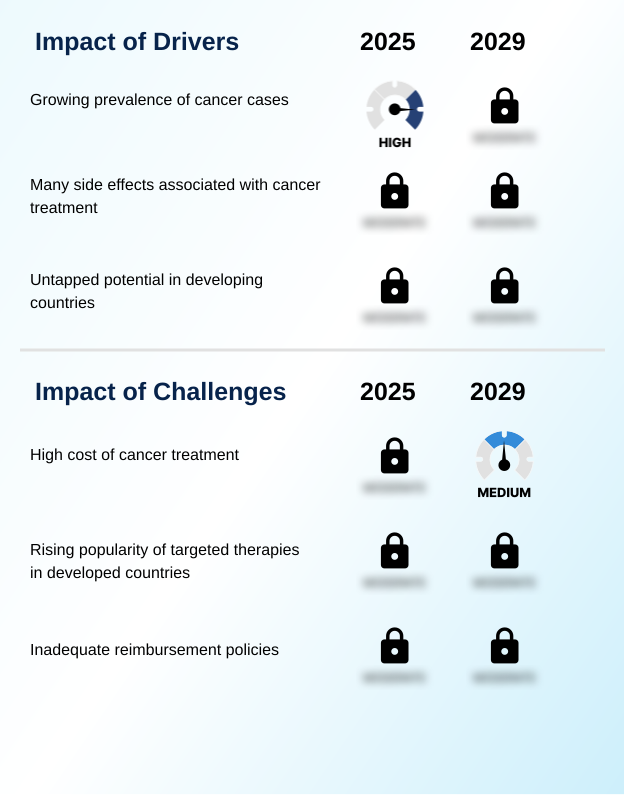 The cancer supportive care industry research report provides comprehensive data (region-wise segment analysis), with forecasts and estimates in "USD million" for the period 2025-2029, as well as historical data from 2019 - 2023 for the following segments.