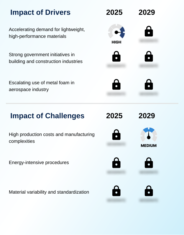 - A significant challenge affecting industry growth is the high production costs and complexities associated with manufacturing metal foam.