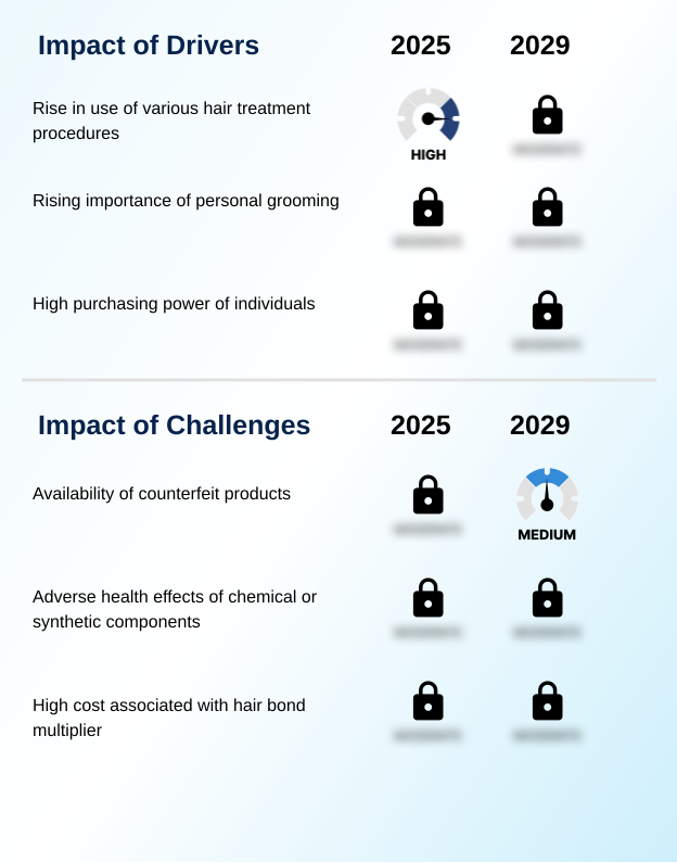 The hair bond multiplier industry research report provides comprehensive data (region-wise segment analysis), with forecasts and estimates in "USD million" for the period 2025-2029, as well as historical data from 2019 - 2023 for the following segments.
