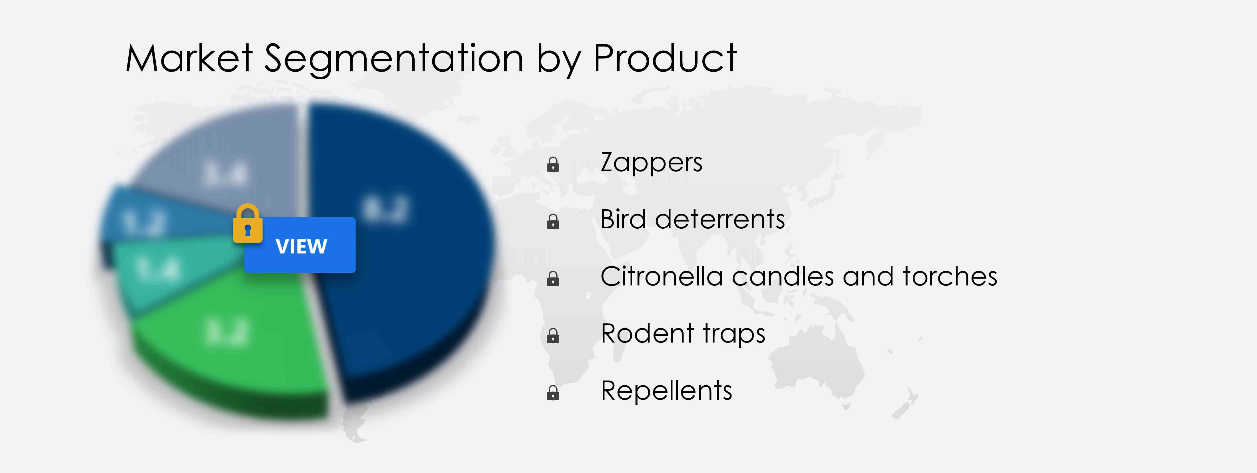 This home outdoor pest control devices market research report provides valuable insights on the post COVID-19 impact on the market, which will help companies evaluate their business approaches. Furthermore, this report extensively covers home outdoor pest control devices market segmentations by product (zappers, bird deterrents, citronella candles and torches, rodent traps, and repellents) and geography (North America, Europe, APAC, and South America). The home outdoor pest control devices market report also offers information on several market vendors, including Armatron Co., Bell Laboratories Inc., Bird B Gone Inc., Bird-X Inc., JT Eaton & Co. Inc., Kaz Inc., Nixalite of America Inc., Olee International Pte Ltd., STV International Ltd., and Thermacell Repellents Inc. among others.