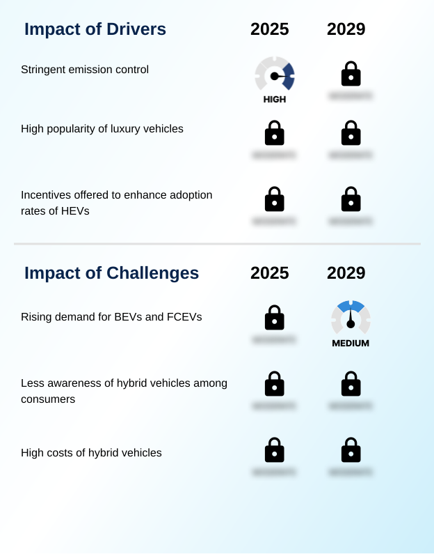 The rising adoption of green vehicles is a primary trend shaping the market, as both consumers and governments prioritize sustainability. This shift is driving demand for vehicles that balance the capabilities of an internal combustion engine with the efficiency of electric propulsion systems. The growth of the hybrid electric vehicle (HEV) market is supported by technological advancements in powertrain control strategies and enhanced energy storage solutions, which improve fuel efficiency and reduce the carbon footprint. Government incentives and subsidies are also making these vehicles, including popular crossover vehicles, more accessible. One key region, for instance, is projected to contribute nearly 49% of the market's incremental growth, largely due to this trend.A parallel trend gaining momentum is the rising demand for lightweight vehicles, which directly enhances the performance and efficiency of hybrid systems. Automakers are increasingly employing advanced lightweighting strategies, using materials that reduce overall vehicle mass without compromising safety or structural integrity. This focus on weight reduction improves drivetrain efficiency and lowers the energy required for propulsion from both the internal combustion engine and the electric motor. The development of mild hybrid vehicles and more efficient hybrid power systems benefits significantly from this approach, as a lighter vehicle requires a less powerful, and therefore more cost-effective, hybrid system architecture to achieve performance targets.