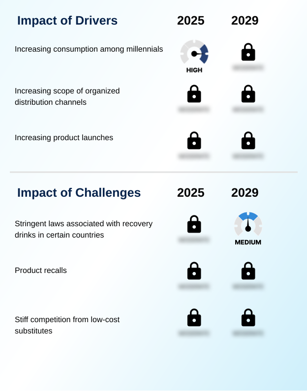 The recovery drinks industry research report provides comprehensive data (region-wise segment analysis), with forecasts and estimates in "USD million" for the period 2025-2029, as well as historical data from 2019 - 2023 for the following segments.