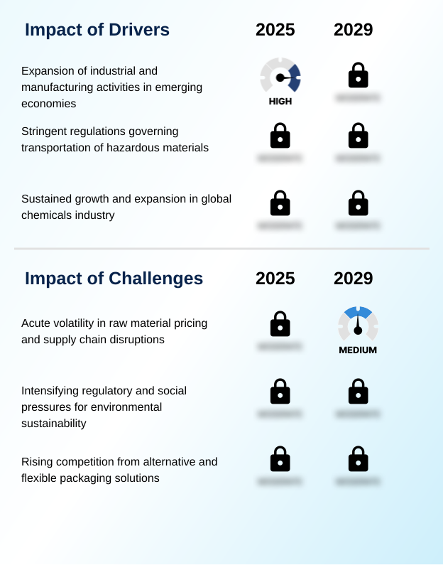 Despite its high growth, the APAC market, which accounts for a small yet growing share of the global opportunity, faces unique challenges. The market is highly fragmented, with numerous local players competing on price, which can impact quality and safety standards. Furthermore, the infrastructure for collecting and recycling used industrial packaging is still developing in many parts of the region, lagging behind more mature markets. This hinders the widespread adoption of a circular economy model and presents logistical complexities across its diverse geographies.