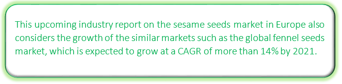 To offer clients the scope to identify potential market opportunities and expand in niche markets, this report on the sesame seeds market in Europe also divides the market using various segmentation criteria such as geographic segmentation, segmentation based on application, segmentation based on seed type. Sesame seeds are gaining popularity in recent times for its application as a flavoring and garnishing agent in bakery and cereal industry. With more emphasis given to food presentation and flavors, our analyst predicts positive growth prospects for this market.