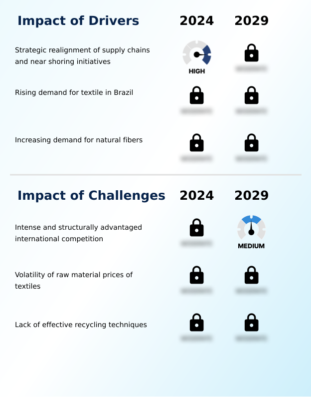 The Brazilian textile market is experiencing significant growth, driven by a confluence of factors including the rising demand for textiles in Brazil and an increasing demand for natural textile fibers. This expansion is supported by sector-specific trends such as the growing demand for geotextile materials and key innovations in the automotive textile industry. Concurrently, increasing healthcare spending for medical textiles is boosting the adoption of specialized products like antimicrobial textiles in healthcare products. The government is also playing a role through initiatives supporting sportech textiles. In response, the industry is witnessing rising innovations in the textile industry, with companies pursuing product innovations and product line extensions. This progress is underpinned by a comprehensive digital transformation in the textile sector and the implementation of automation solutions in the textile industry to enhance efficiency and competitiveness.Despite these opportunities, the market navigates a complex landscape of challenges. A major consideration is the strategic realignment of global supply chains, which intensifies the intense structurally advantaged international competition. Domestically, manufacturers grapple with the volatility of raw material textile prices and the rising costs of high-quality raw materials. Operational concerns are compounded by labor shortages in the textile industry and the imperative to mitigate health hazards in the textile industry, all while adhering to government regulations on worker safety apparel. While there is a strong push for the integration of sustainable circular economy principles, this is often stymied by a lack of effective textile recycling techniques, posing a significant hurdle to long-term environmental goals.