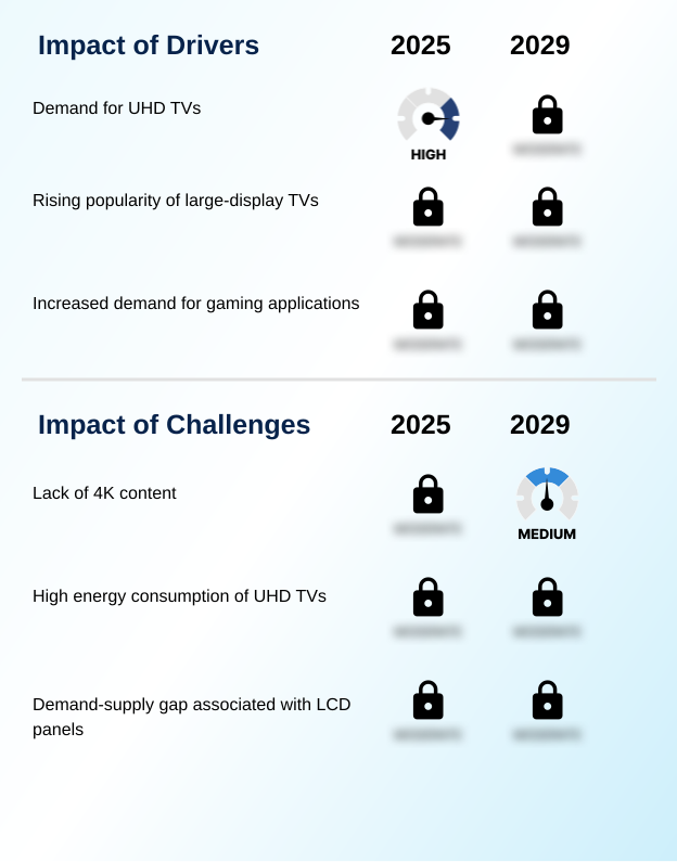 The ultra hd television (UHD TV) industry research report provides comprehensive data (region-wise segment analysis), with forecasts and estimates in "USD million" for the period 2025-2029, as well as historical data from 2019 - 2023 for the following segments.
