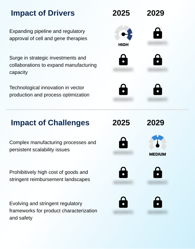 The Global Viral Vector Manufacturing Market is experiencing robust growth, primarily driven by the expanding pipeline of cell and gene therapies and the corresponding increase in demand for high-quality vectors. This surge is supported by significant technological innovation in vector production, which is enhancing efficiency and yield. Furthermore, the market is witnessing strategic investments in manufacturing capacity from both established players and new entrants. The expanding regulatory approval for CGT worldwide is providing a clearer path to commercialization, fueling further investment and development. To meet growing demands, there is an accelerated adoption of process automation to streamline production and ensure consistency.Despite the positive outlook, the market faces significant hurdles. The complex manufacturing processes and scalability issues present ongoing challenges, often leading to a prohibitively high cost of goods which can limit patient access. Navigating the evolving and stringent regulatory frameworks also adds another layer of complexity for manufacturers. In response to these challenges and to gain better control over the supply chain, there is a notable strategic shift towards in-house manufacturing by many biopharmaceutical companies. Concurrently, the industry is seeing a diversification of viral vector technologies to overcome the limitations of current platforms.