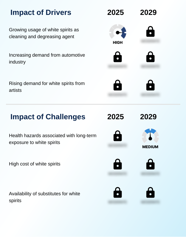 The white spirits industry research report provides comprehensive data (region-wise segment analysis), with forecasts and estimates in "USD million" for the period 2025-2029, as well as historical data from 2019 - 2023 for the following segments.
